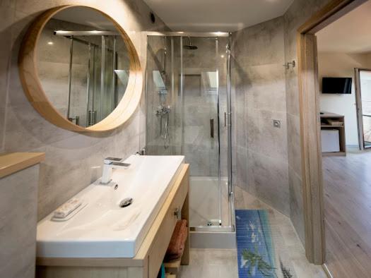 Apartament rodzinny typu Deluxe Suite. The family room provides a dining area, a wardrobe, a terrace with garden views as well as a private bathroom featuring a shower. The unit offers 3 beds. Rodzinny - 5 osobowy. Powierzchnia pokoju ok.: 35 mkw.